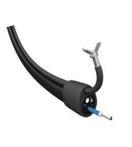 · positioned at the distal end of the endoscope at precise angulation, working in tandem with the endoscope's working channel
